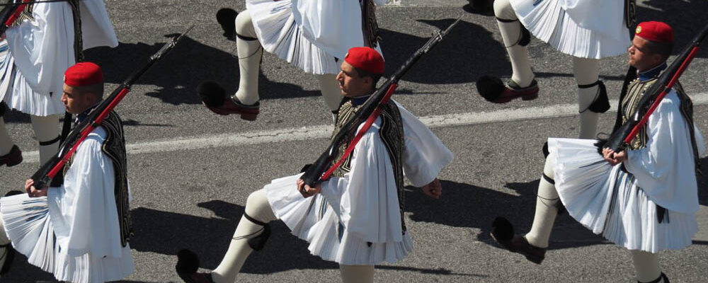 If you’ve wandered through central Athens, passing the Hellenic Parliament in Syntagma Square, it’s really a one-in-a-million chance that you will miss the two figures standing in perfect stillness, guarding the Tomb of the Unknown Soldier. At any time of day or night, regardless of the weather, they stand there for something far greater than